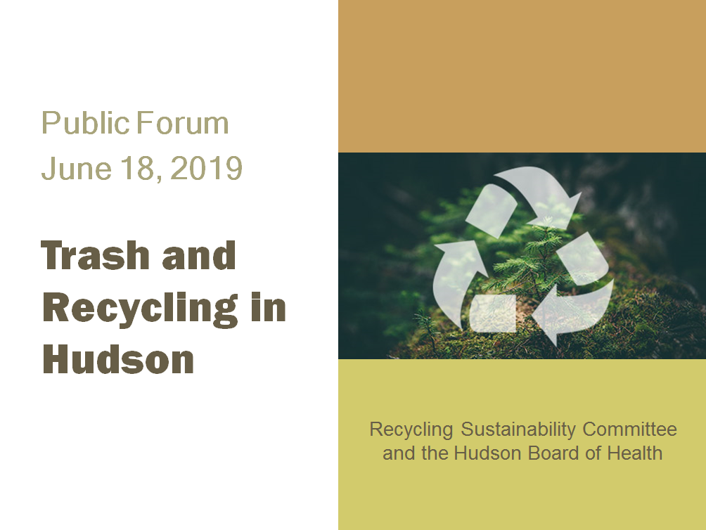 Mission: The Committee shall examine the Save Money and Reduce Trash (SMART) options and weigh their viability in the Town of Hudson. They shall study the impacts both SMART curbside and SMART drop off may have on Hudson and its residents. The Committee shall formulate strategies and recommendations for mitigating the impacts of changing the current system. Committee members shall research and design an outreach program that will educate the citizens on the solid waste options available. They will incorporate suggestions and information from the community into their final recommendation. They will take into consider the following issues when making their final recommendation to the Board of Selectmen in September 2019: